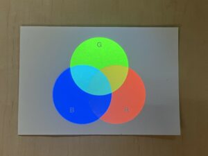 - 色相:通常照明下では透明、UVを照射するとレッド、ブルー、グリーンに発光する